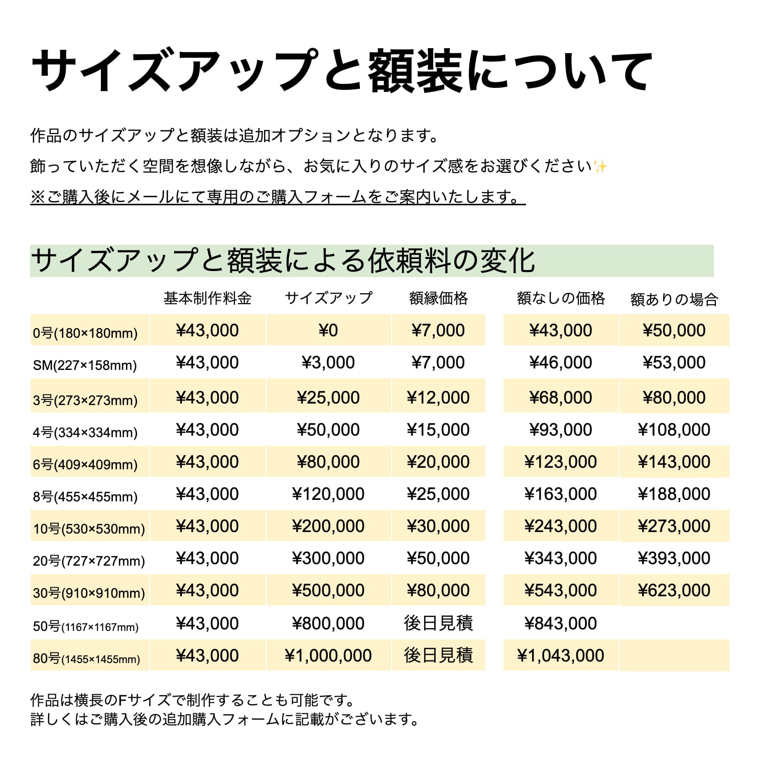 ※1)本商品は基本サイズ「S0号(180×180mm)額なし」の価格となっております。