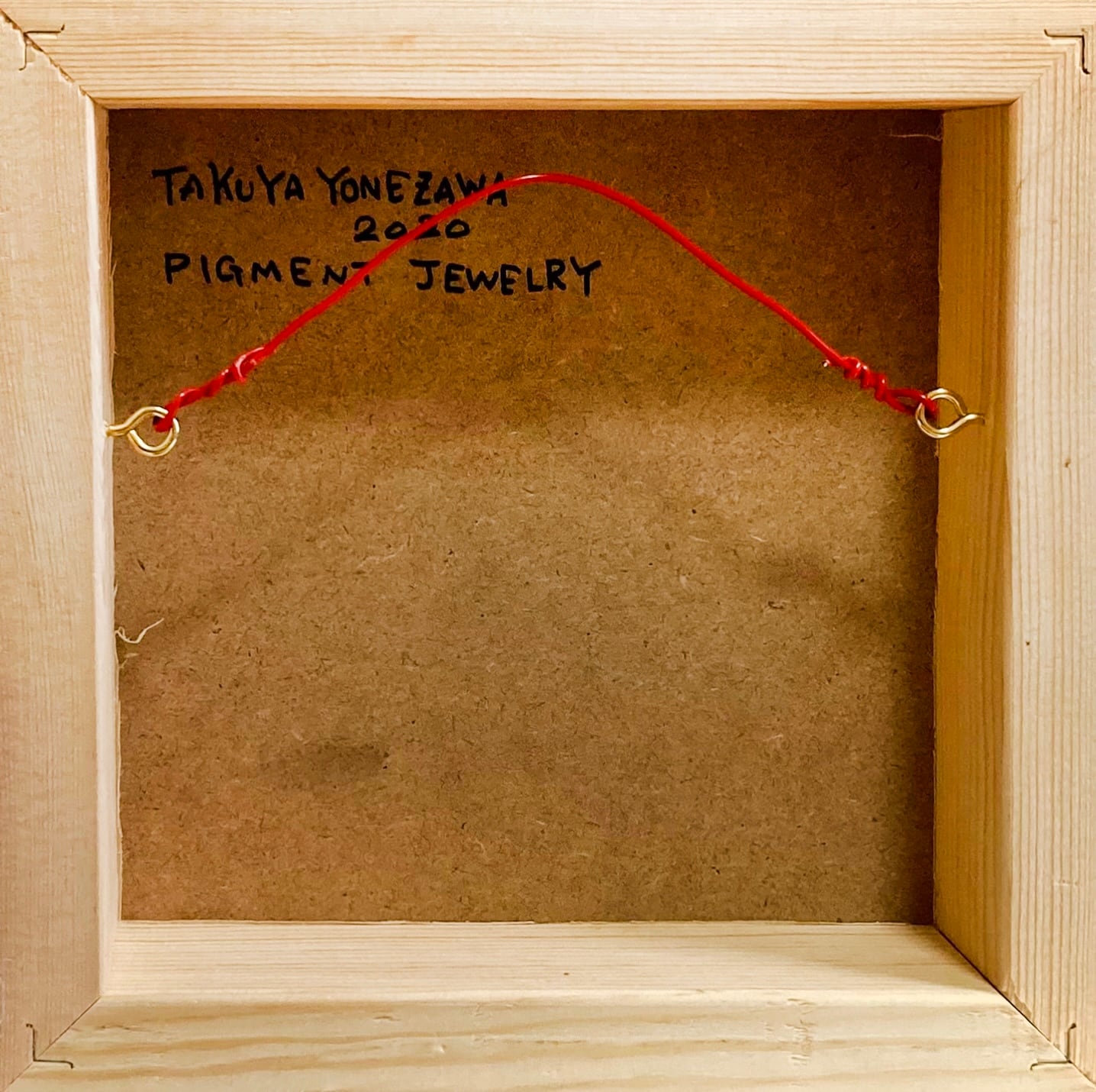 PIGMENT JEWELRYは絵の具の偶然の重なりでできた宝石です。顔料の純粋な色の輝きは、時に本物の宝石以上にきらめいて見えることがあります。本作はそんな絵の具の純粋な美しさをキャンバスに閉じ込めました。小型作品なので場所を選ばずに飾っていただけます。