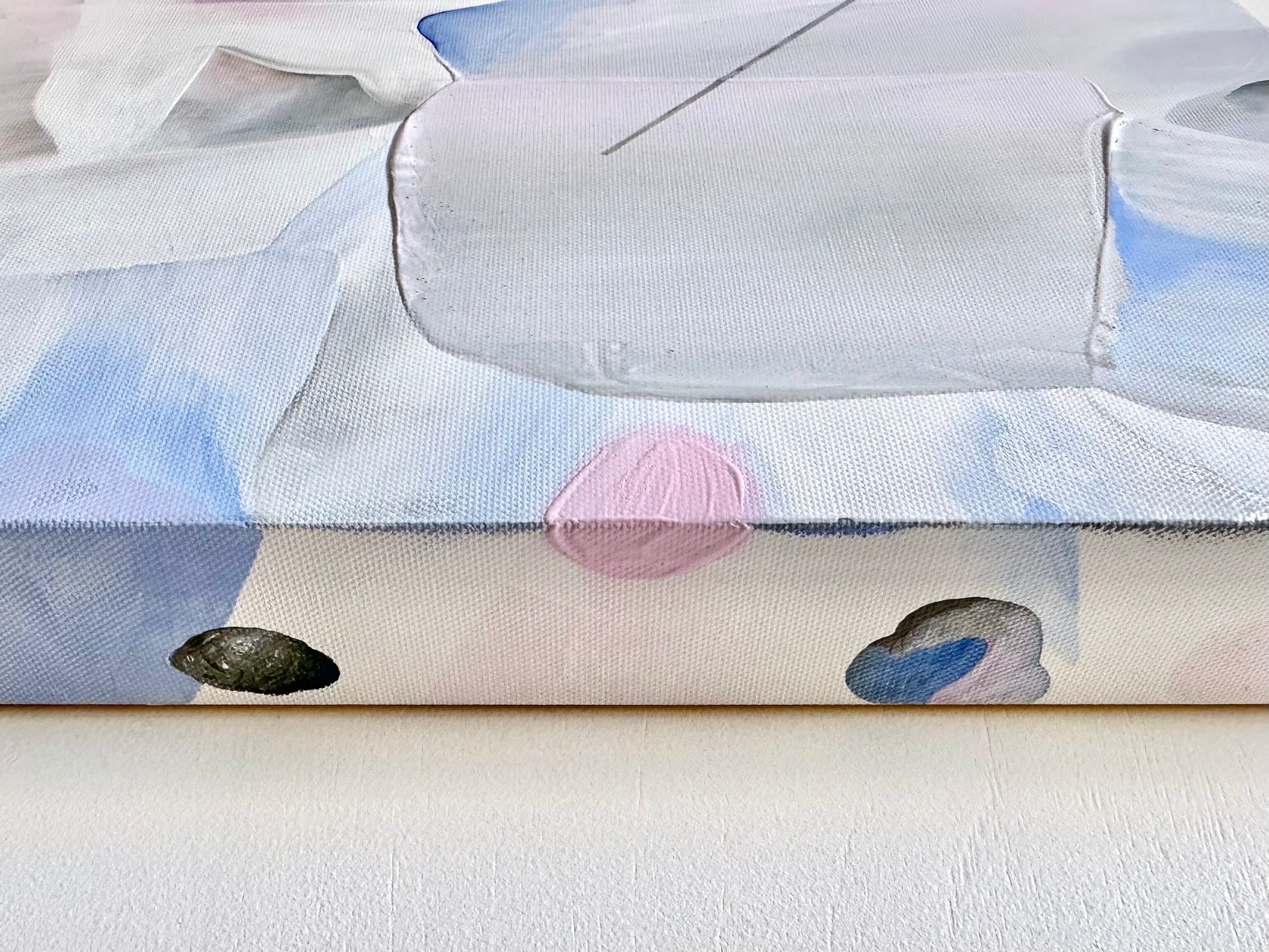 白・青・桃をメインカラーとした作品はきっと空間を優しく彩ってくれると思います。