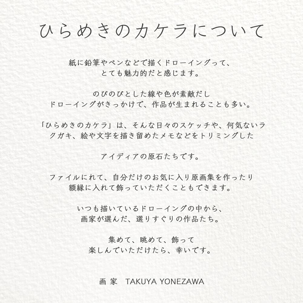 「ひらめきのカケラ」は、TAKUYA YONEZAWAの日々のスケッチや、何気ないラクガキ、絵や文字を描き留めたメモなどをトリミングしたアイディアの原石たちです。